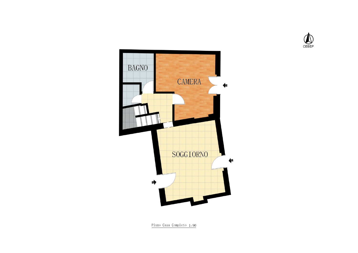 Sul medesimo livello troverai una camera matrimoniale, un bagno raffinato e un ripostiglio.