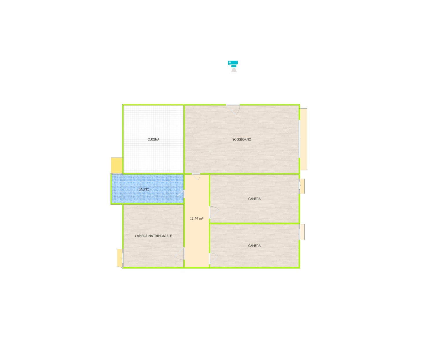 La zona notte è pensata per offrire comfort e privacy. Le due camere matrimoniali sono luminose e ciascuna ha il proprio piccolo balcone, perfetto per far entrare aria e luce o per iniziare la giornata con un caffè all’aperto. Il bagno principale è dotato di doccia, mentre il secondo bagno di servizio, anch’esso finestrato, rende la casa ancora più comoda nella vita di tutti i giorni.