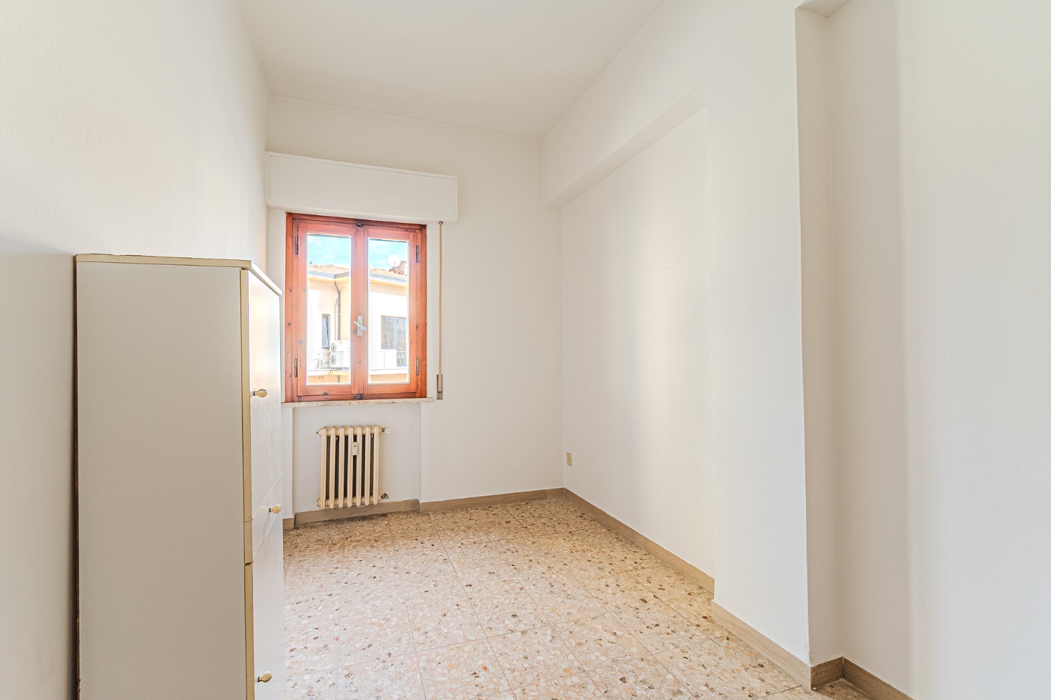 Varcando la mia soglia troverai un ingresso che accoglie, poi una camera da letto spaziosa, uno studio dove sognare o lavorare in serenità, un bagno finestrato, un soggiorno luminoso dove l’eco della vita può tornare a risuonare, e una cucina che aspetta solo nuove ricette e nuovi racconti.