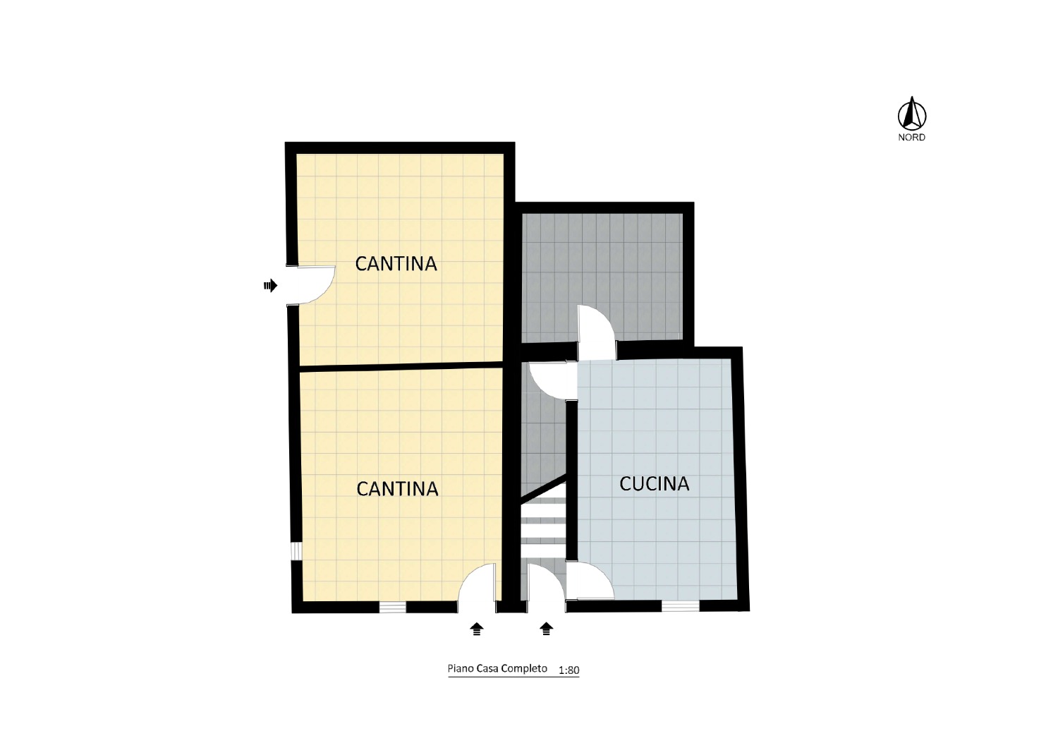 Al piano terra custodisco una cucina con caminetto, il cuore caldo della casa, dove immagino già tavole apparecchiate, chiacchiere la sera e il crepitio del fuoco nelle giornate d’inverno. Accanto, due vani e una cantina abitabile, spazi versatili destinati a diventare ciò che desideri.