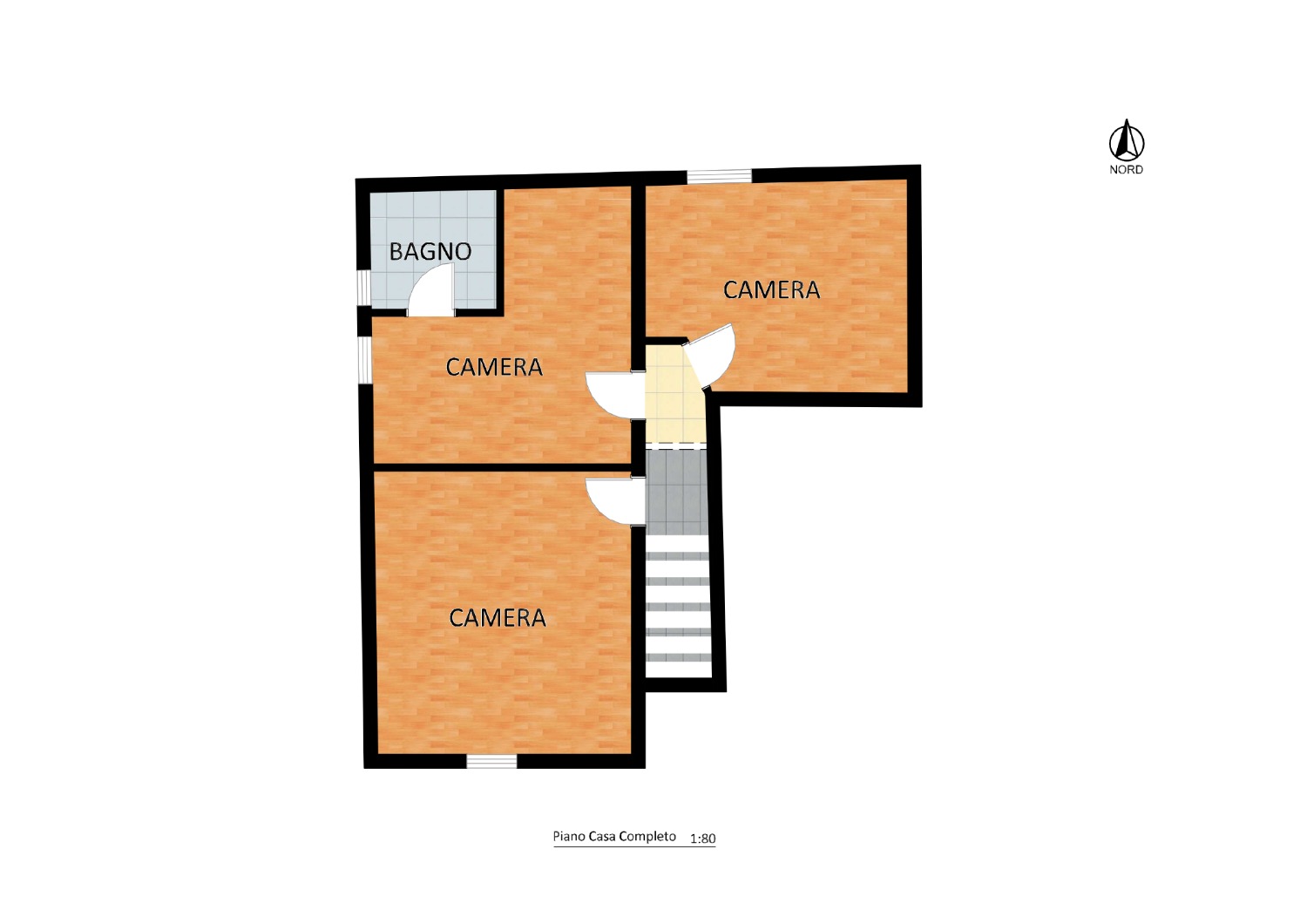 Salendo al piano primo, ti aspettano tre camere e un bagno.