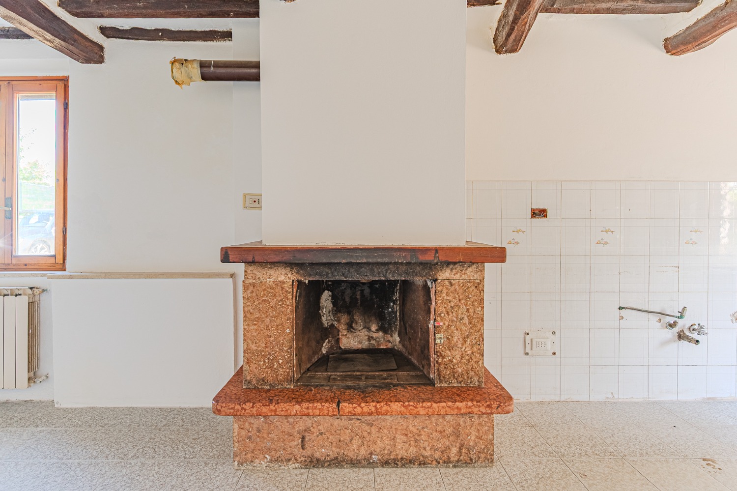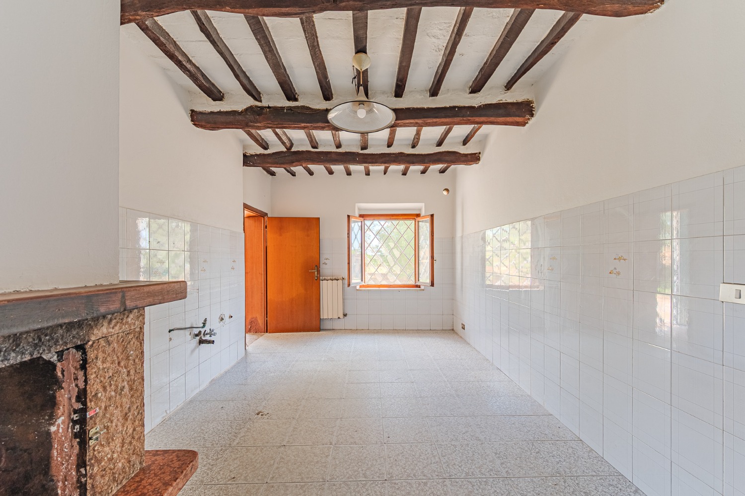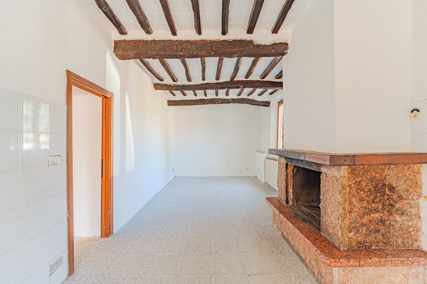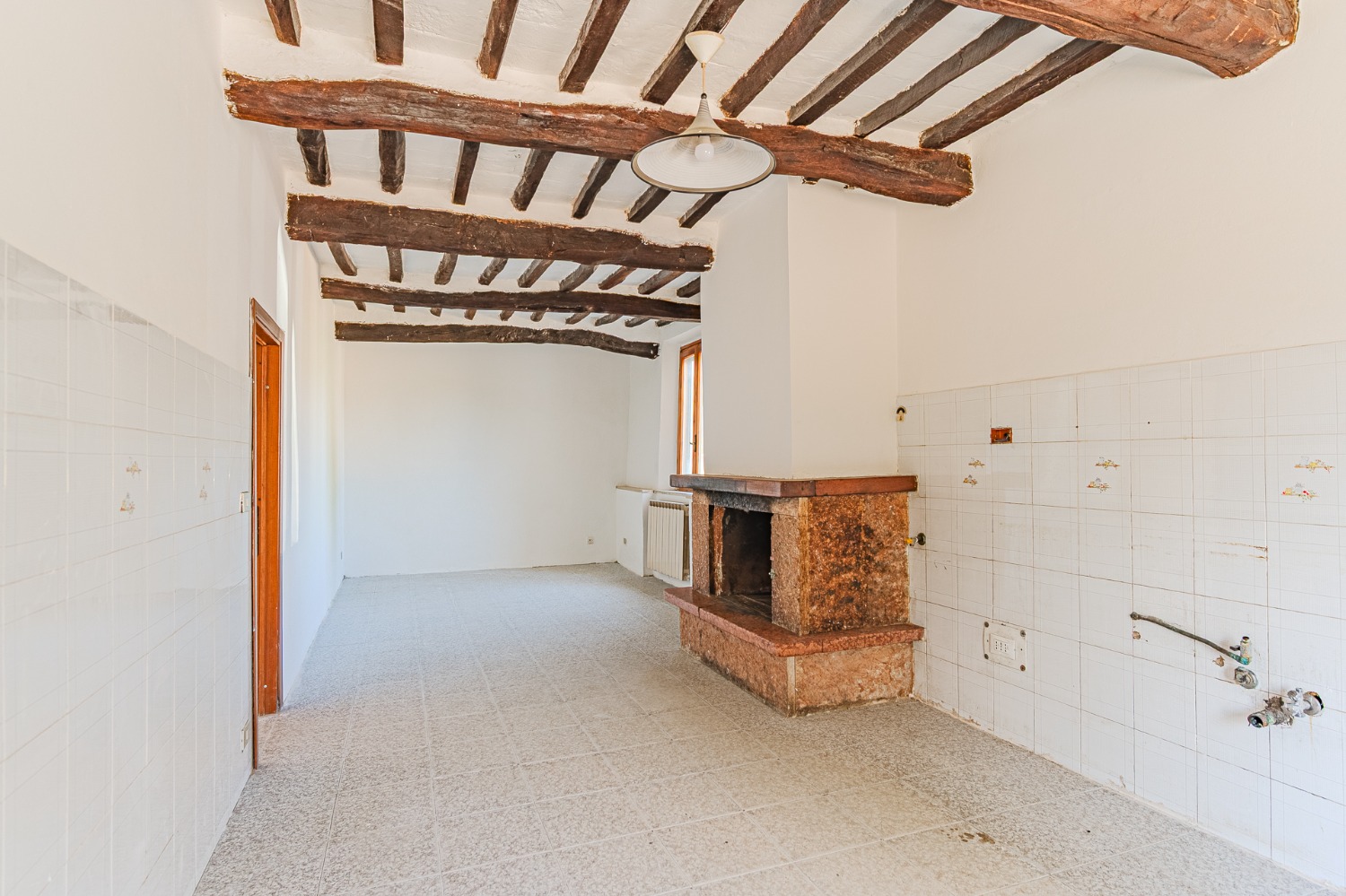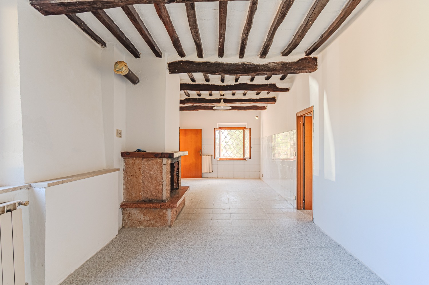 Appena entri, ti accolgo con un soggiorno semplice e luminoso, e una cucina abitabile con camino che sa di pane caldo, di chiacchiere e famiglia.